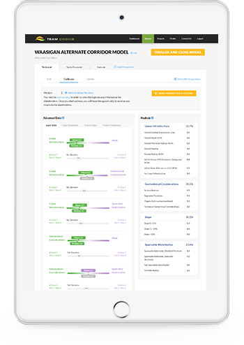Team Choice allows infrastructure developers to collaborate with internal and external stakeholders to make siting decisions that are objective, quantifiable, and defensible.